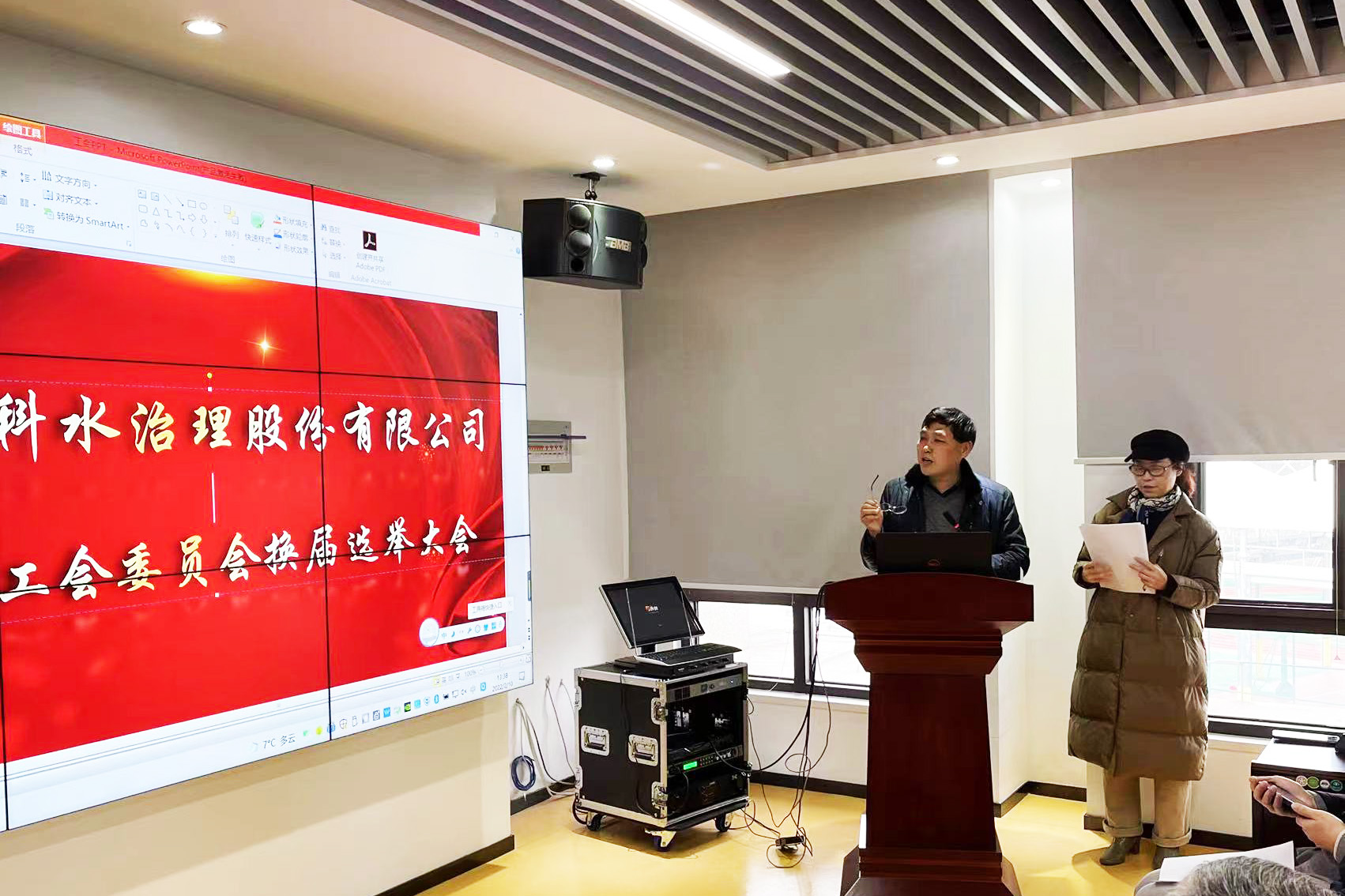 近日,南京中科水治理召開了第三屆工會委員會換屆選舉大會,選舉產生新一屆的工會委員會。會議由公司副總經理周志嶺、工會委員會主任楊新學共同主持,董事長馬亦兵先生出席,公司各部門領導及成員共同參加了會議。